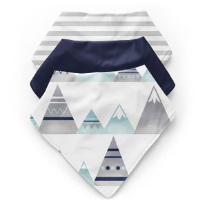 Mountains Grey and Aqua Collection Fabric Bandana Baby Bibs - 3 Pack Set