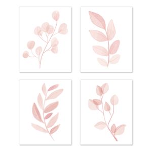 Botanical Blush Pink Collection Wall Art Prints - Set of 4 - Single Flower