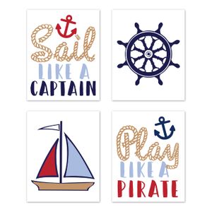 Nautical Nights Collection Wall Art Prints - Set of 4