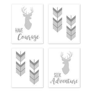 Woodsy Grey and White Collection Wall Art Prints - Set of 4