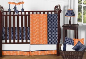 Arrow Orange and Navy 11 Piece Bumperless Crib Bedding Collection