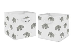 Elephant Grey and Mint Collection Foldable Fabric Storage Bins - Set of 2