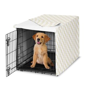 Gingham Checkered Plaid Collection Dog Crate Kennel Cover 36in. - Taupe and White