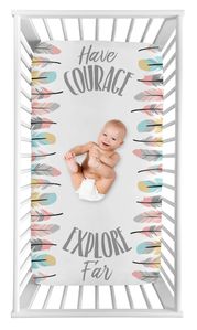 Feather Turquoise and Coral Collection Photo Op Crib Sheet