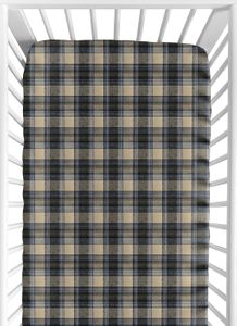 Rustic Patch Blue and Tan Collection Plaid Crib Sheet