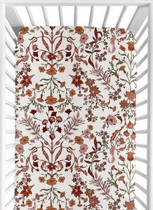 Boho Floral Wildflower Rust Orange and Ivory Collection Crib Sheet