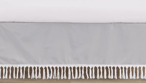Boho Fringe Grey and White Collection Crib Bed Skirt
