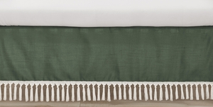 Boho Fringe Dark Green and Ivory Collection Crib Bed Skirt