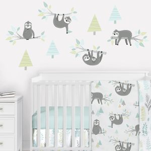 Sloth Aqua And Grey Collection Peel and Stick Wall Decal Stickers - Set of 4 Sheets