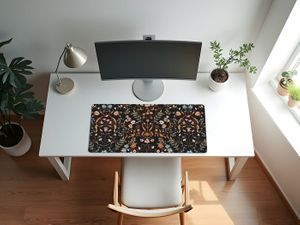 Boho Floral Wildflower Black and Orange Collection Large Mouse Pad Desk Mat