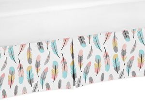 Feather Turquoise and Coral Collection Crib Bed Skirt