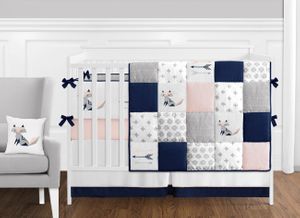Pink and Navy Fox Patch 9 Piece Crib Bedding Collection