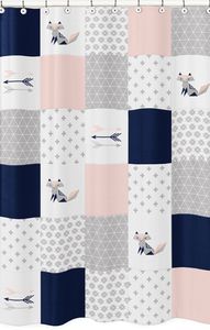 Fox Patch Pink and Navy Collection Shower Curtain