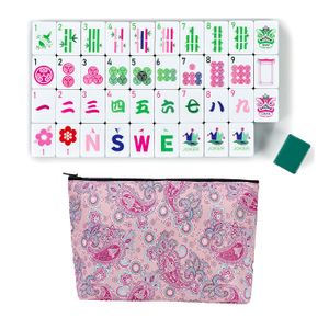 American Mahjong Tile Set (160pc) 1.25in. Layered Acrylic with Paisley Travel Bag - Luxury Green & Pink
