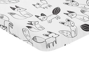 Fox Black and White Collection Mini Crib Sheet