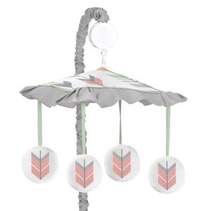 Mod Arrow Grey, Coral and Mint Collection Musical Mobile