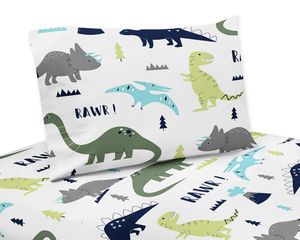 Mod Dinosaur Blue and Green Collection Twin Sheet Set