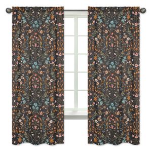 Boho Floral Wildflower Black and Orange Collection Window Panels - Set of 2
