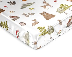 Watercolor Woodland Forest Animals Satin Fitted Crib Sheet