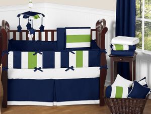 Navy and Lime Stripe 9 Piece Crib Bedding Collection