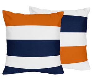 Stripe Navy Blue and Orange Collection Decorative Accent Throw Pillow Covers - Set of 2
