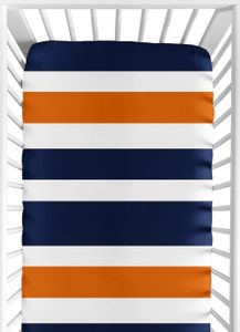 Stripe Navy Blue and Orange Collection Crib Sheet - Stripe Print