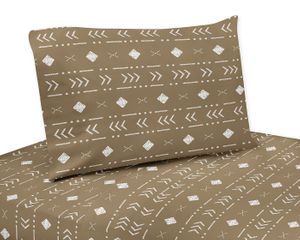Boho Tribal Cocoa Brown and White Twin Sheet Set