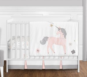 Unicorn 4 Piece Bumperless Crib Bedding Collection