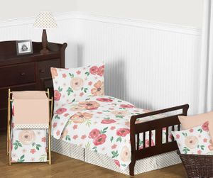 Watercolor Floral Peach and Green Collection Toddler Bedding