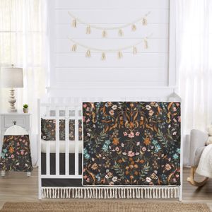Boho Floral Wildflower Black and Orange Collection Sweet Jojo Designs 6 Piece Crib Bedding + BreathableBaby Breathable Mesh Liner
